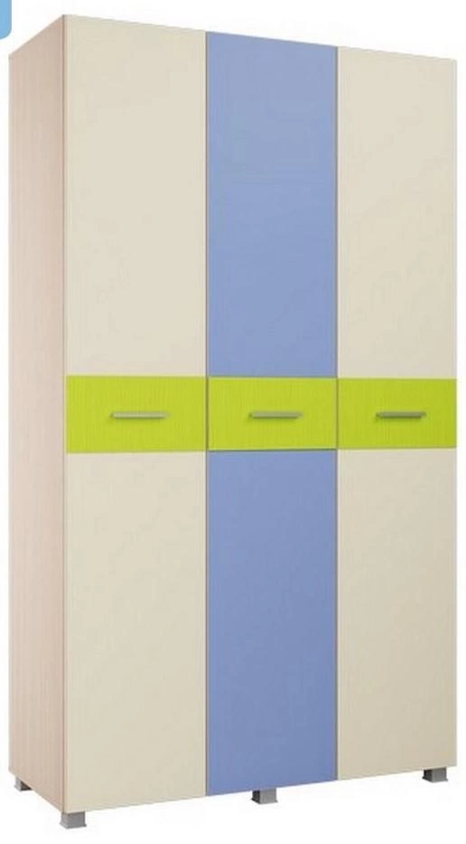 - Цвет одного из трёх фасадов СИНИЙ, а двух остальных - БЕЖЕВЫЙ. Накладки на фасадах выполненные из ХДФ толщиной 3мм, облицованные Плёнкой ПВХ Матовая Риф Лайм, расположены по центру фасадов, что позволяет им быть взаимозаменяемыми и располагаться на любом месте.