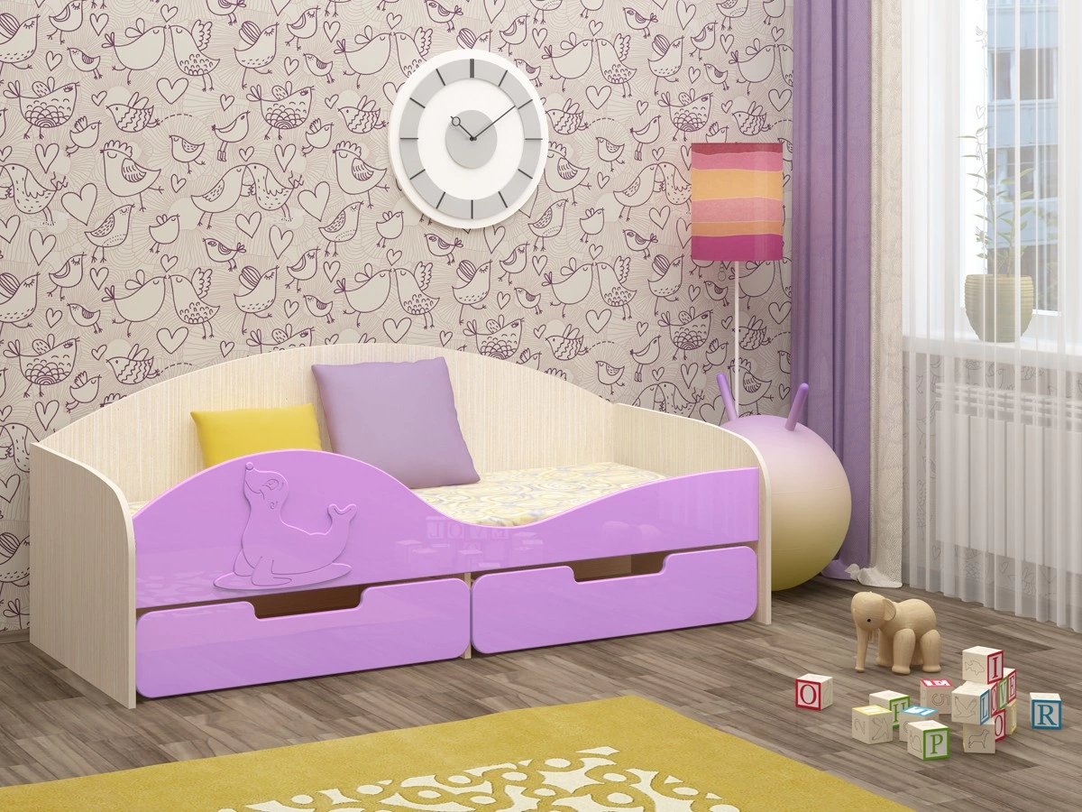 Кровать "Юнга-8" МДФ - превосходный выбор для детской комнаты вашего ребенка. Кровать оснащена бортиком с накладкой в виде милого тюленя, который защищает вашего ребенка от возможного падения во сне. Снизу кроватки находятся два выдвижных ящика, в которых удобно хранить детские игрушки, одежду или белье. Эта оригинальная кроватка поразит Вас своим милым дизайном.