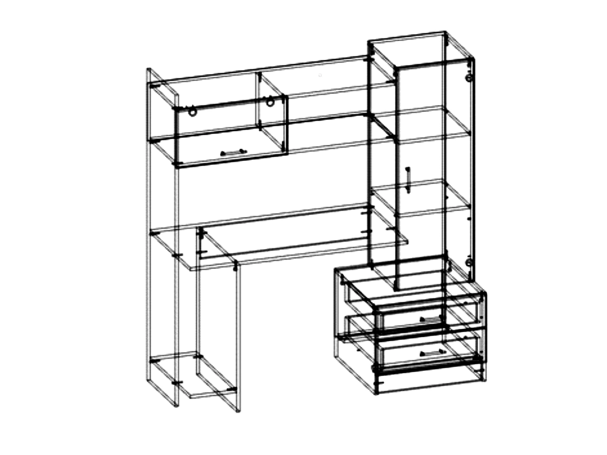 - Ширина 1534 мм x Глубина 570 мм х Высота 1600 мм