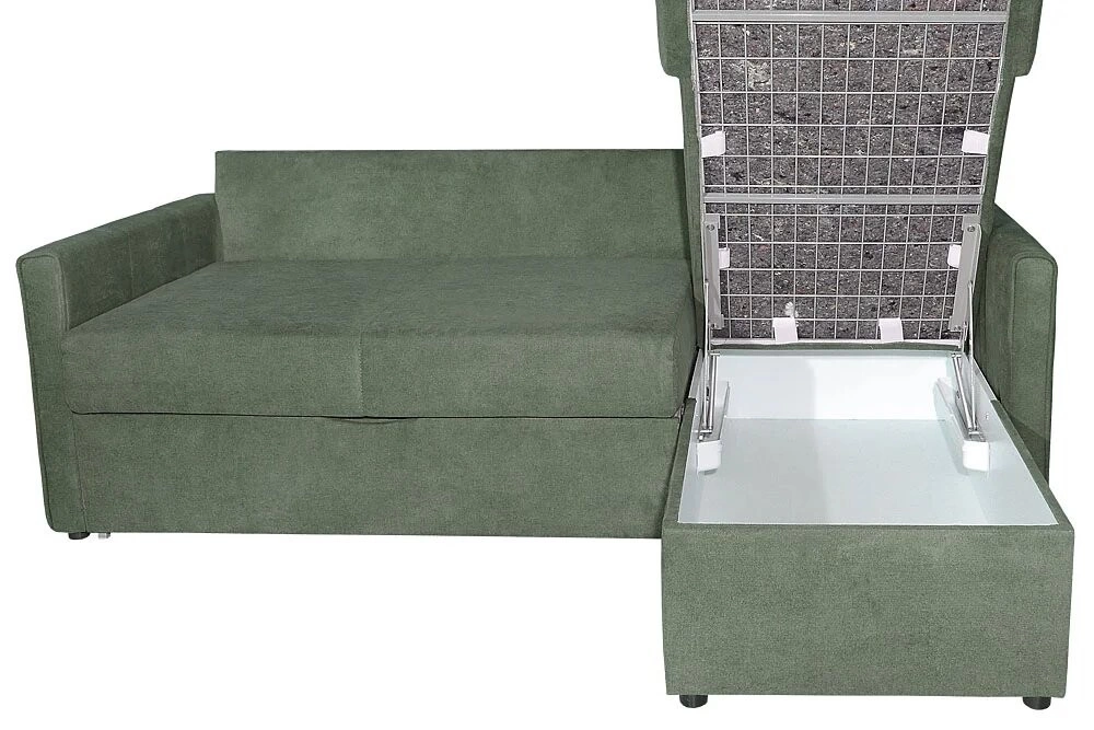 - Каркас диванной части, спального места и сиденья оттоманки: металлический