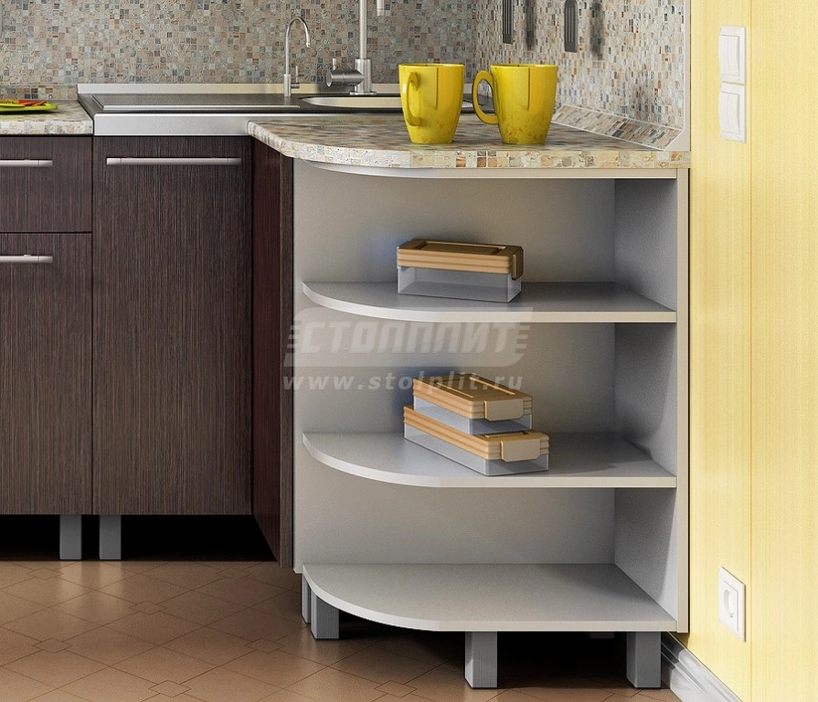 Цена указана за комплект столов и полок. Дополнительно рекомендуется приобрести столешницу, стеновую панель, мойку и сушку.