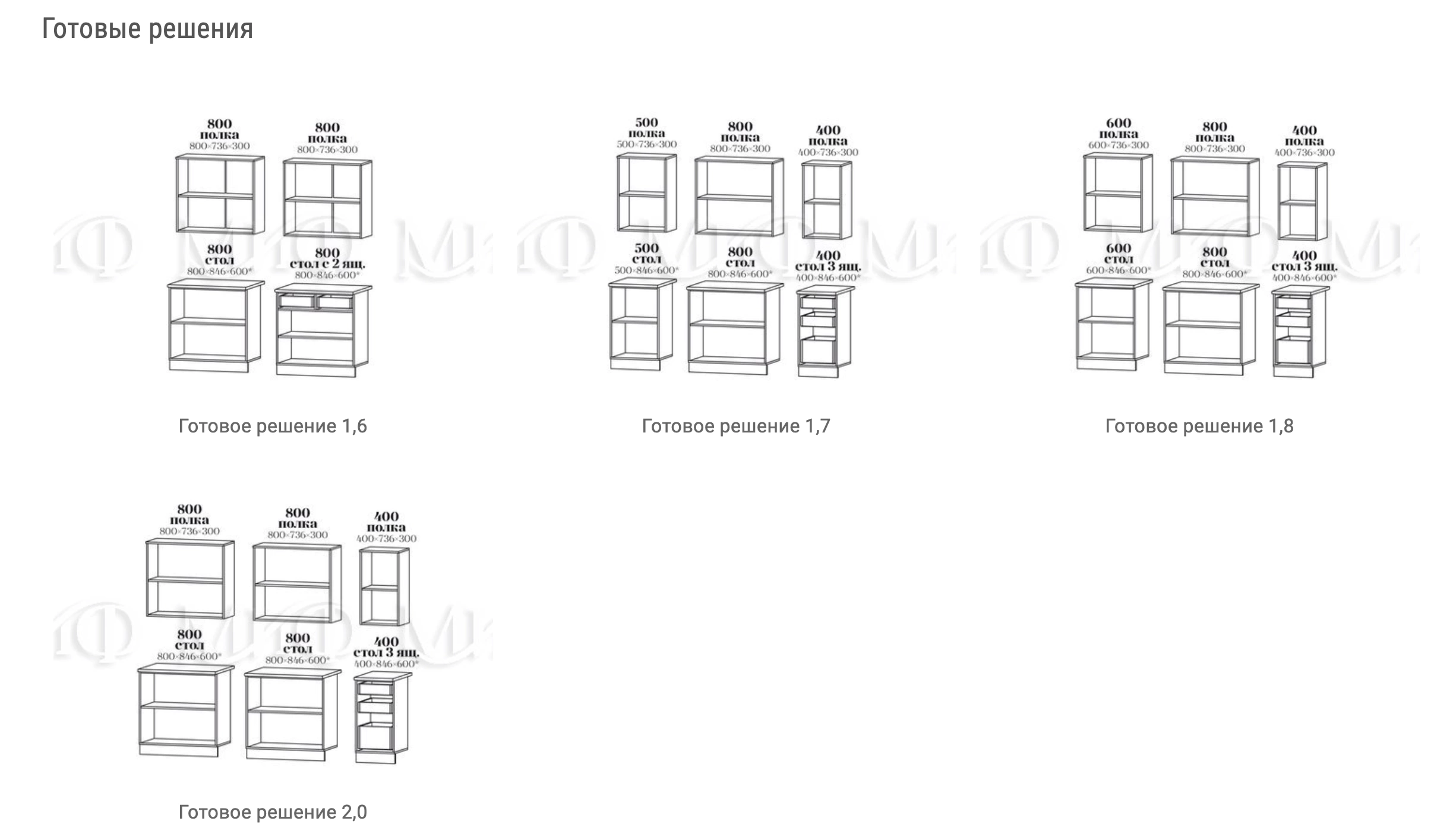 - Глубина шкафов: Верхние 320 мм/Нижние 450 мм/Глубина столешницы 600 мм
