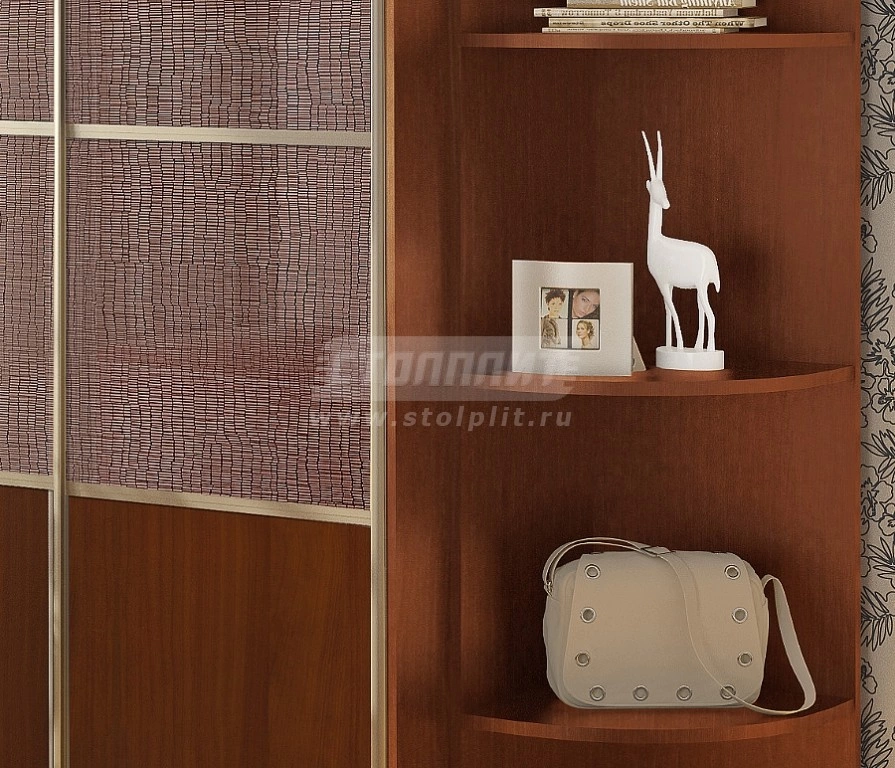 Шкаф 2-х дверный «СБ-1082БП» воплощает в себе сочетание комфорта и изящества. Данная модель обладает большой вместительностью: кроме закрытых секций присутствует торцевой пенал с четырьмя открытыми полками. Шкаф оборудован стеклянным фасадом с нежным рисунком, а также имеет верхнюю подсветку. Шкаф выполнен в актуальном цвете «Яблоня локарно».
