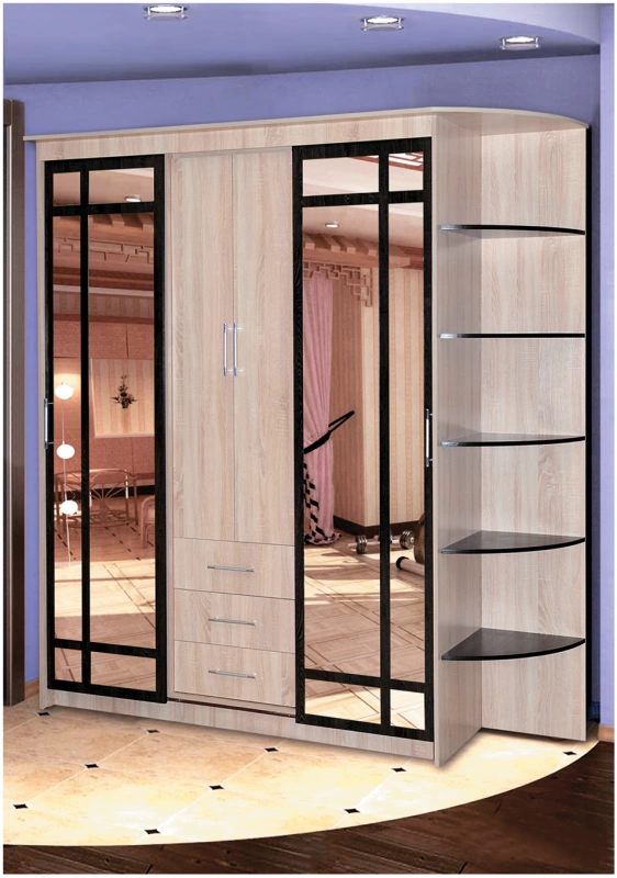 Габаритные Размеры: Ширина 2,1/2,4 м х Высота 2,3 х Глубина 0,56. На изображении цвет Дуб Сонома/Дуб Кантербери.