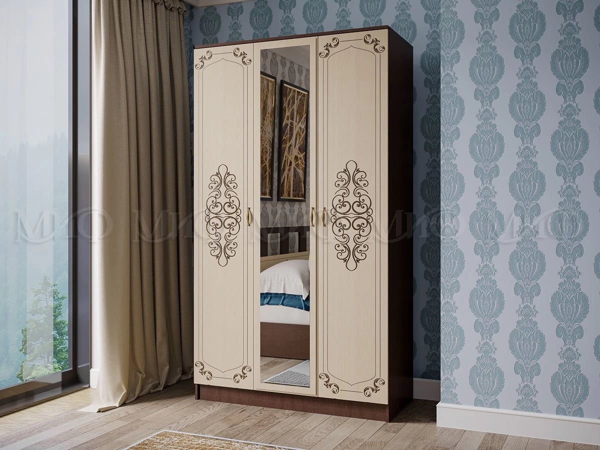 Шкаф Жаклин с очаровательным рисунком на дверях, отлично подчеркнет интерьер, а зеркальная дверь позволит оценить подобранный вами образ в полный рост.