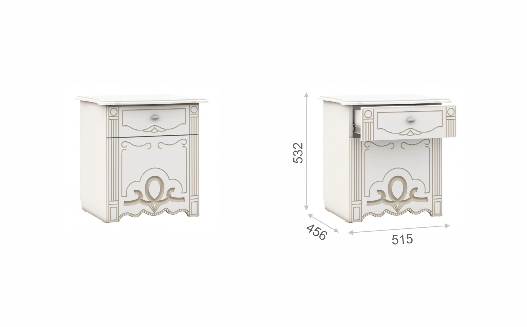 - Тумба Прикроватная: Ширина 515 мм х Глубина 456 мм x Высота 532 мм - 2шт