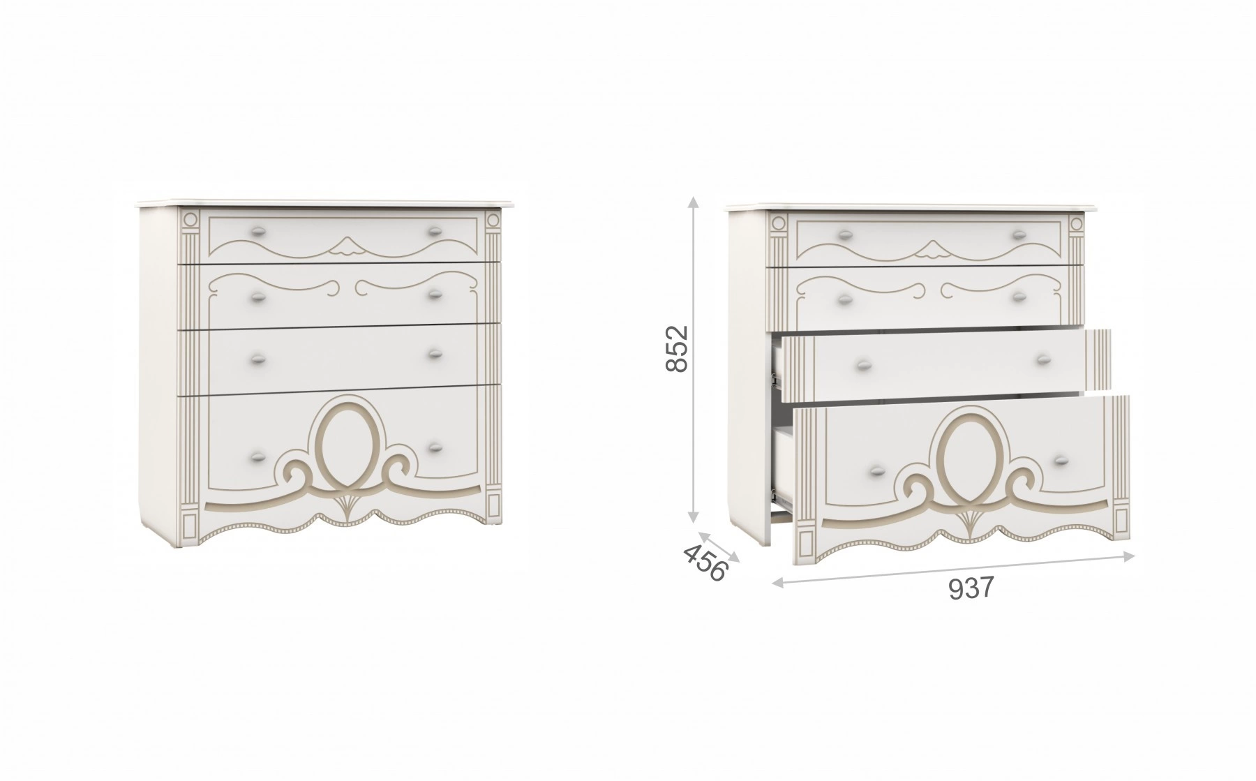 - Комод: Ширина 937 мм х Глубина 436 мм x Высота 852 мм