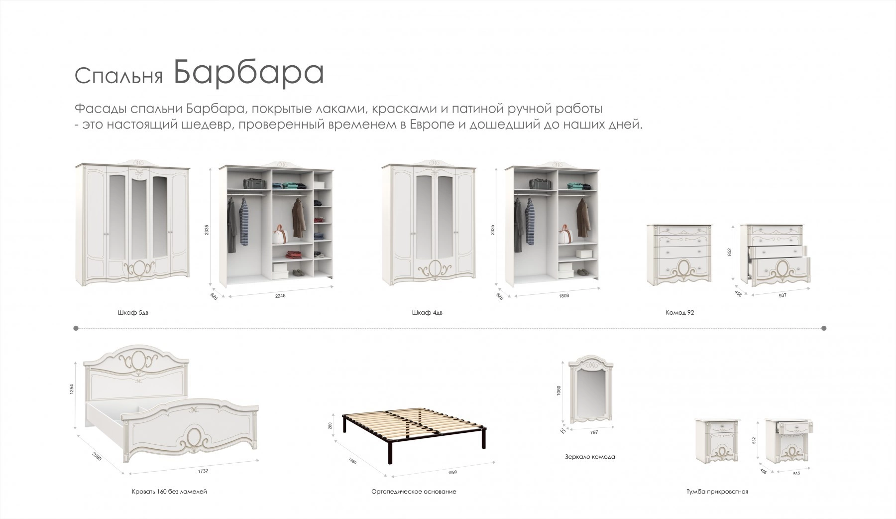 - Шкаф 5-ти Створчатый: Ширина 2248 мм х Глубина 626 мм x Высота 2335 мм