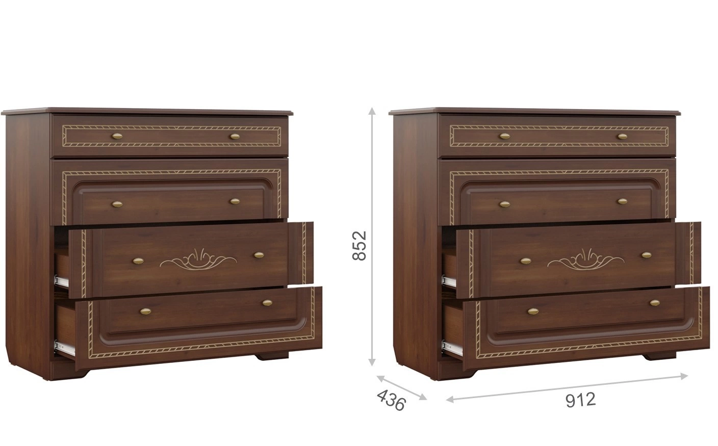 - Комод: Ширина 912 мм х Глубина 436 мм x Высота 852 мм