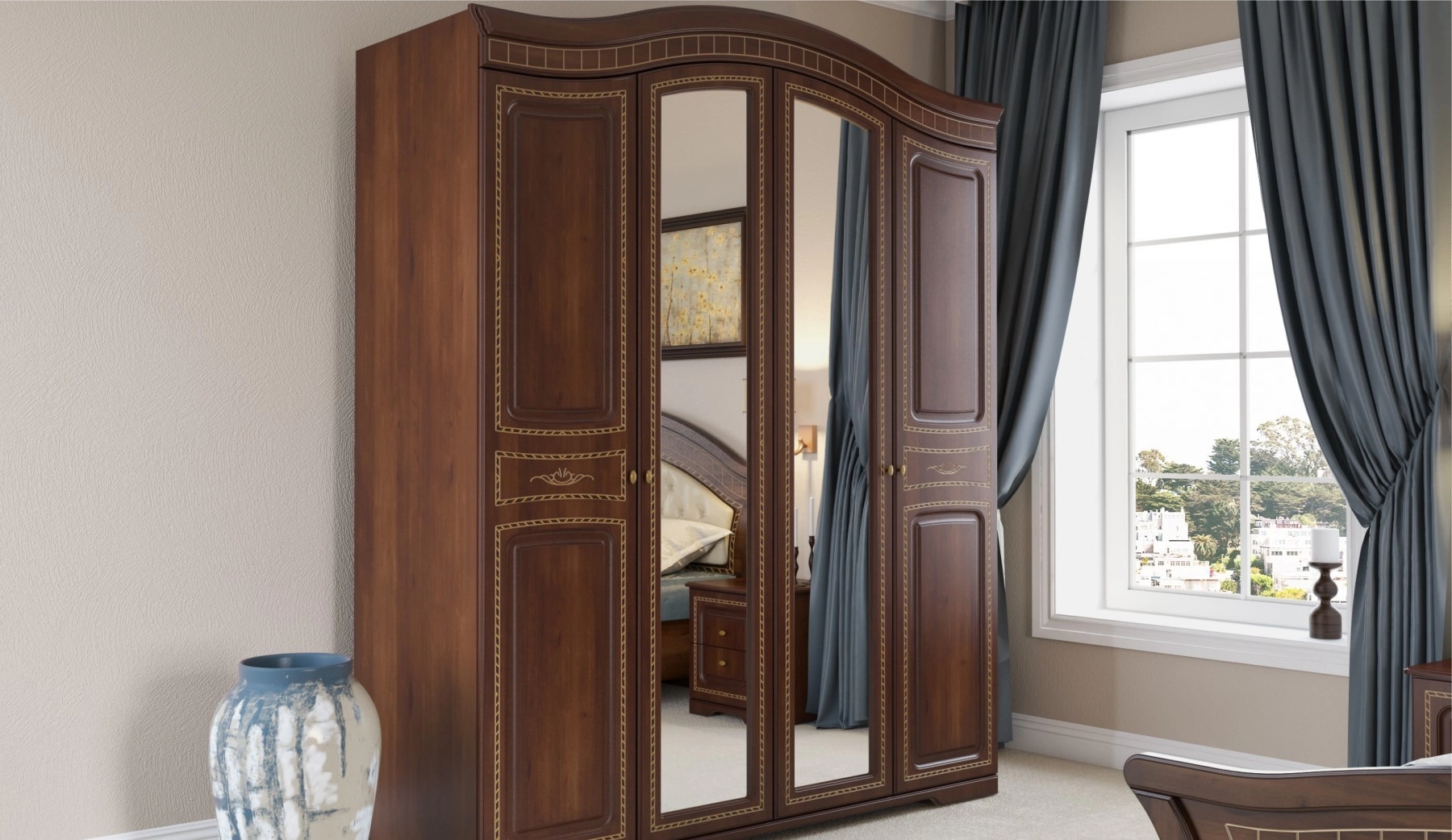 - Шкаф 4-х Створчатый: Ширина 1814 мм х Глубина 618 мм x Высота 2314 мм