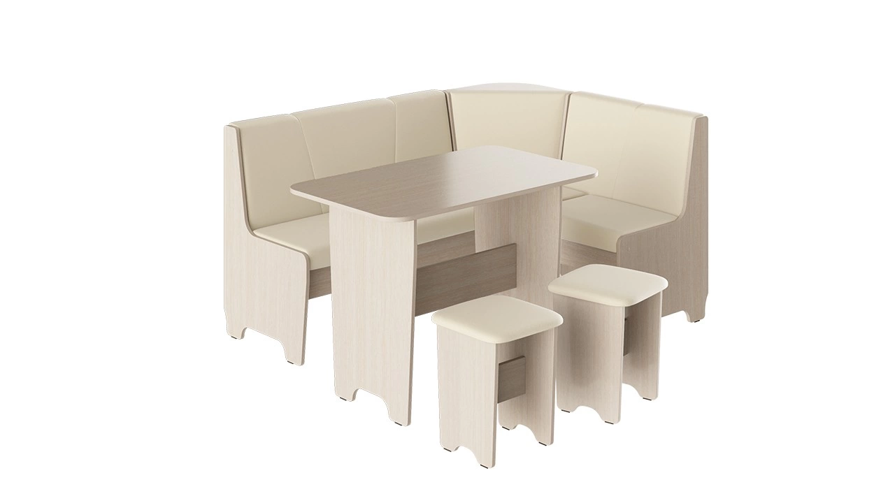 - Обеденная зона "Техас" состоит из удобной угловой скамьи, практичного стола и компактных табуретов.